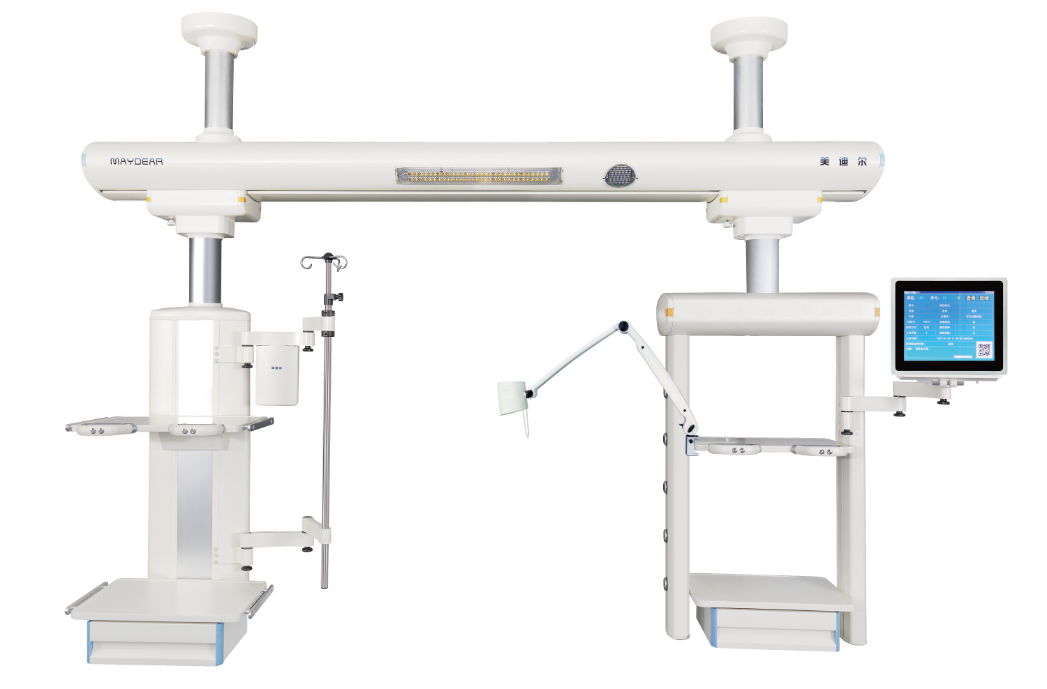 ICU 干濕分離旋臂吊橋 適用于醫(yī)院ICU病房,是現(xiàn)代重癥監(jiān)護病房必備的醫(yī)療搶救輔助設備,主要由橋架,干段和濕段組成。其特點在于合理的干濕分離結構,濕段配置升降靈活的輸液架和輸液泵架。干濕段配置有可升降調(diào)節(jié)的醫(yī)療監(jiān)護儀器平臺,在干濕段上分別將氧氣,空氣,吸引,強弱電,網(wǎng)絡輸入終端配置在醫(yī)護人員抬手可及的塔體上。濕段采用懸臂結構,提高了治療空間,移動旋轉部分采用氣控制動防飄移,桁架中央配置一款環(huán)保,節(jié)能的LED照明治療。為臨床治療提供了照明解決方案,另外還可根據(jù)您的要求選配通信傳呼,監(jiān)控,可視電話